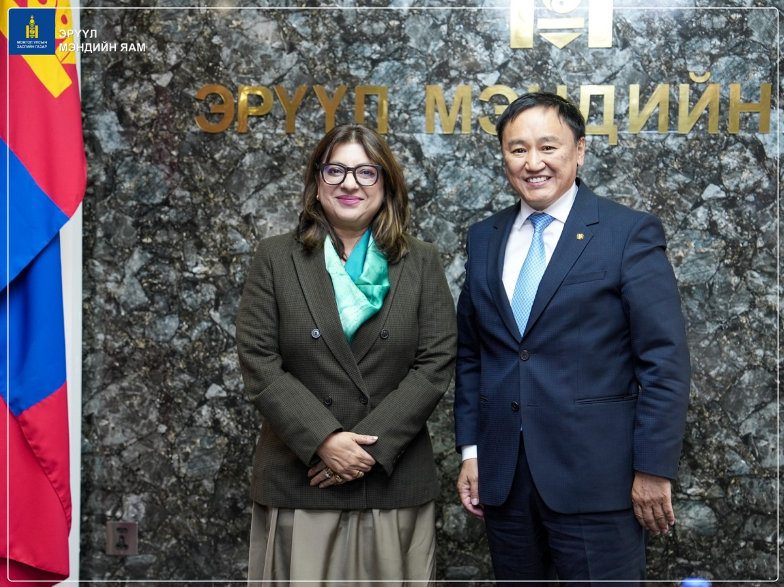 Эрүүл мэндийн сайд Ж.Чинбүрэн болон бусад албаны хүмүүс Азийн хөгжлийн банкны Хүн, нийгмийн хөгжлийн захирал Софиа Шакилыг (2025.08.22…