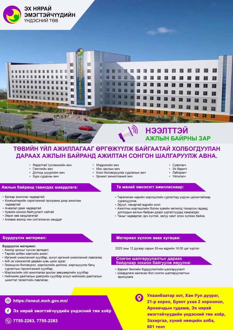 Нээлттэй ажлын байрны зар – 2025 оны 1-р сар